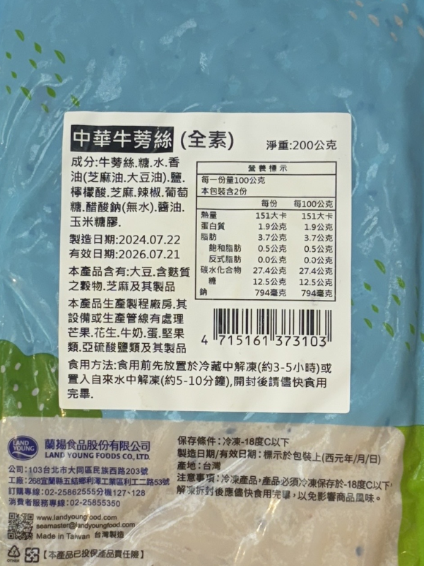 重量:200g / 包 產地:台灣 備註:全素 保存方式:冷凍-18度c以下 調理方式:本產品解凍後即可食用 注意事項:本產品含有大豆、含麩質之穀物、芝麻及其製品,不適合對其過敏體質者食用