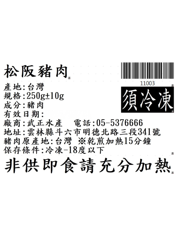 重量:250g / 包 產地:台灣 豬肉原產地:台灣 保存方式:冷凍-18度c以下 調理方式:本產品非供即食,請充分加熱