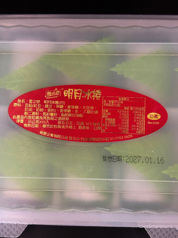 重量:350g / 盒 產地:台灣 保存方式:冷凍-18度c以下 調理方式:本產品解凍後即可食用 注意事項:本產品含有奶類及其製品,不適合其過敏體質者食用