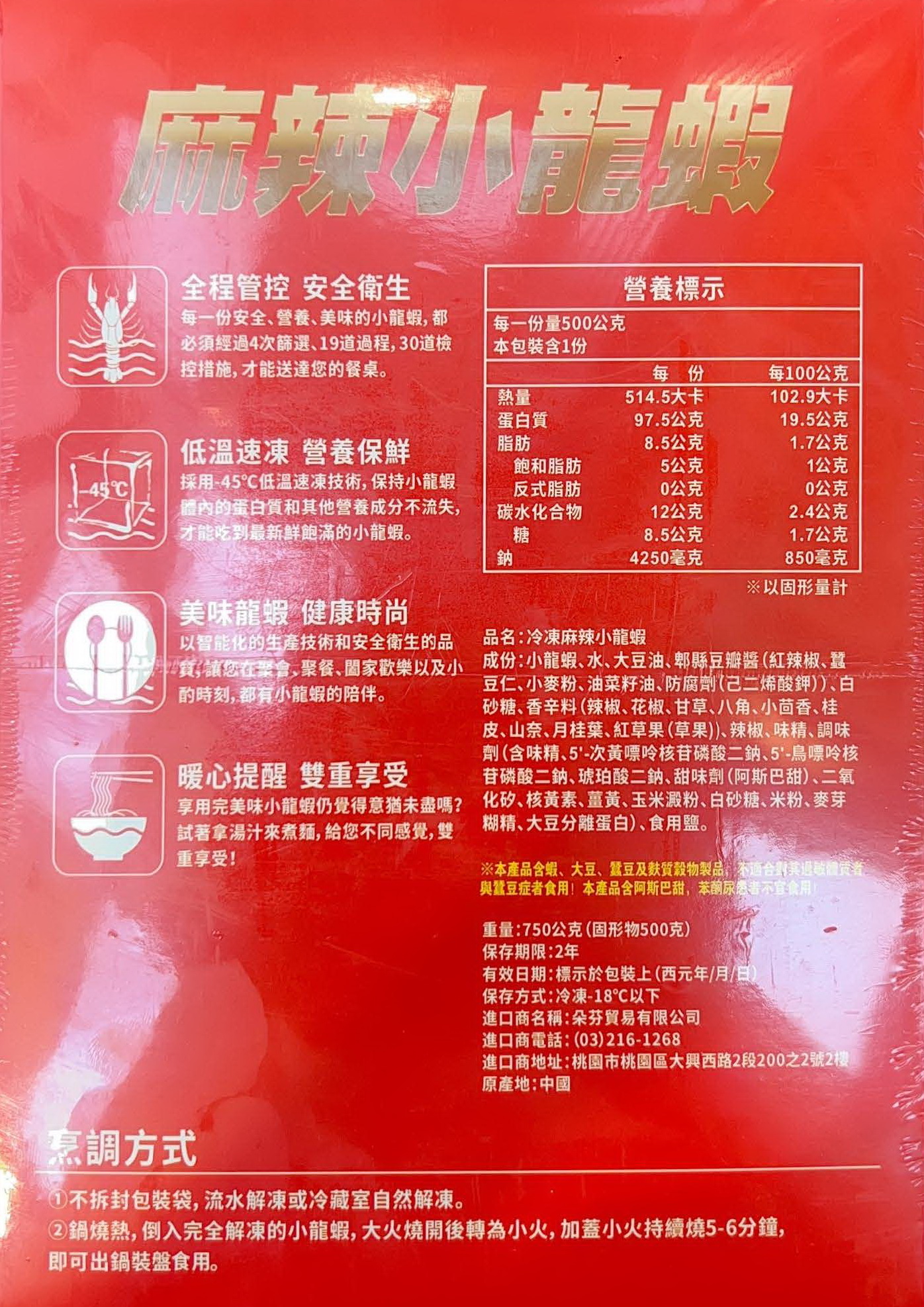 重量:750g / 盒 產地:中國 保存方式:冷凍-18度c以下 調理方式:本產品非供即食,稍微加熱後即可食用 注意事項:本產品含有蝦、大豆、蠶豆及麩質穀物製品,不適合其過敏體質者食用