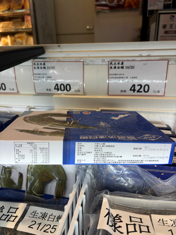 生凍白蝦 21/25 數字為一公斤裡面有21-25隻