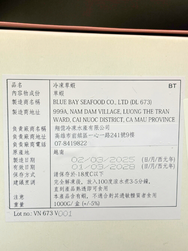 重量:1000g / 盒 淨重:400g 規格:8隻入 產地:越南 保存方式:冷凍-18度c以下 調理方式:本產品非供即食,請充分加熱 注意事項:本產品含有蝦類,不適合對其過敏體質者食用