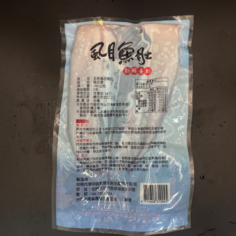 重量:180g / 包 產地:台灣 保存方式:冷凍-18度c以下 調理方式:本產品非供即食,請充分加熱 過敏原:本產品含有魚類,不適合其過敏體質者食用 注意事項:本產品可能存有少許魚鱗或魚刺,食用時請注意