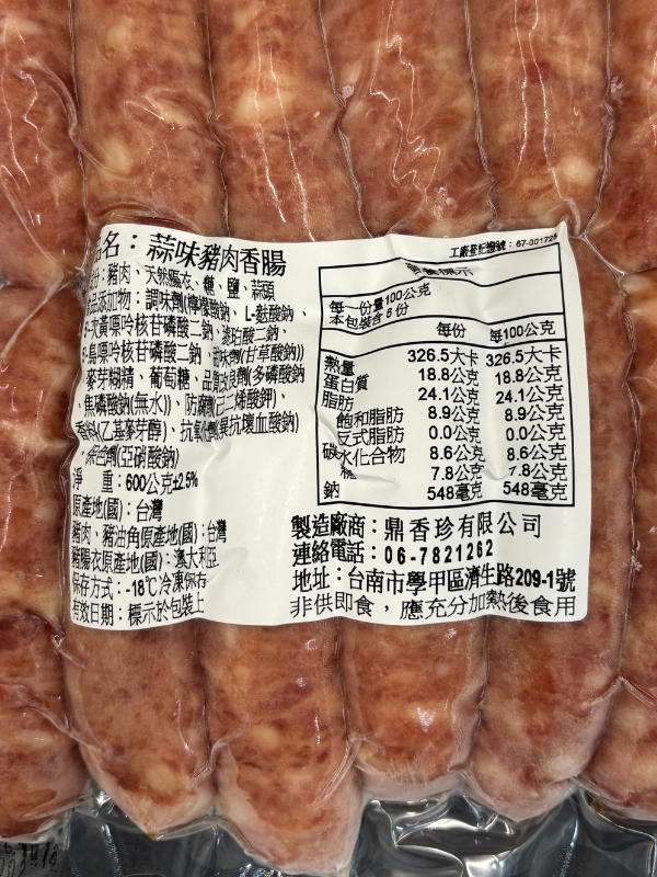 香腸為年菜必買商品,鼎香珍豬肉香腸為老饕必買!