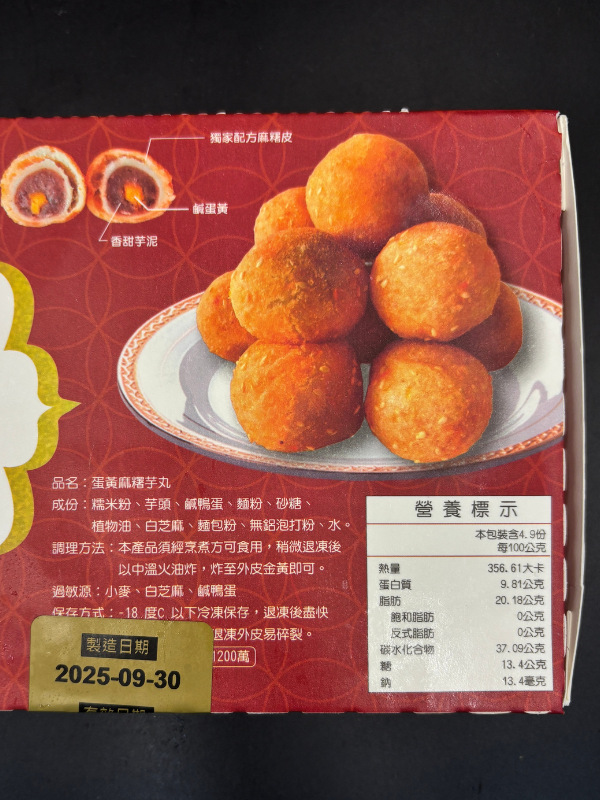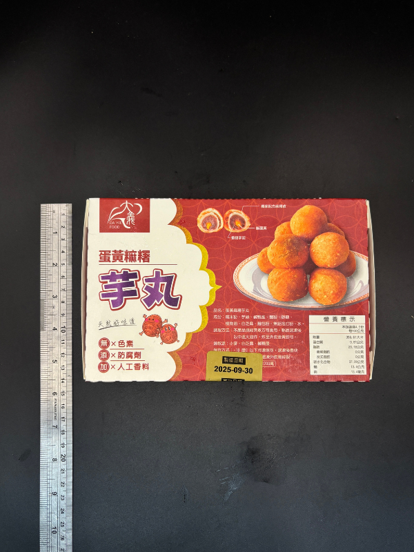台式傳統甜點 蛋黃麻糬芋丸 香酥的外皮,Q軟的蛋黃內餡結合芋頭、蛋黃與麻糬的美味組合