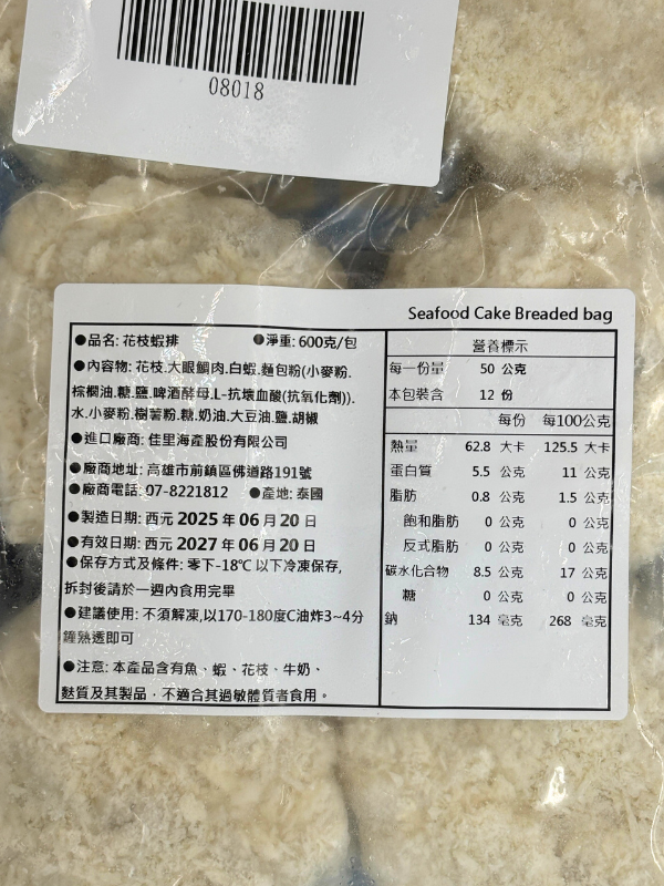 注意事項:本產品含有魚、蝦、花枝、牛奶,不適合其過敏體質者食用