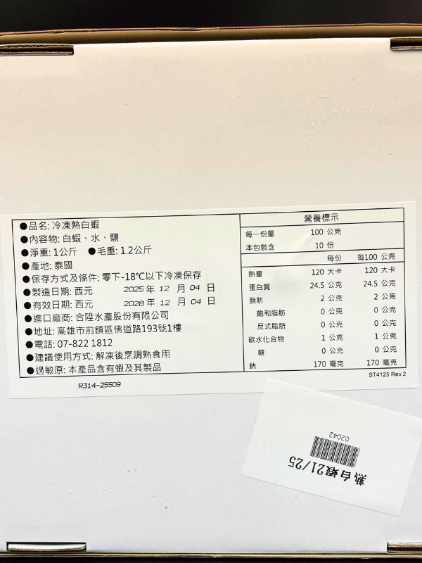 嚴選新鮮白蝦,燙熟後急速冷凍