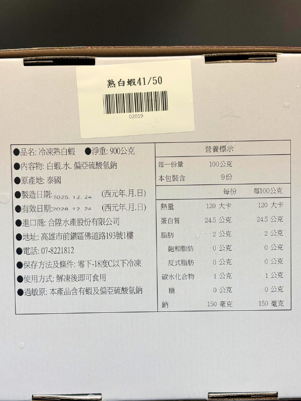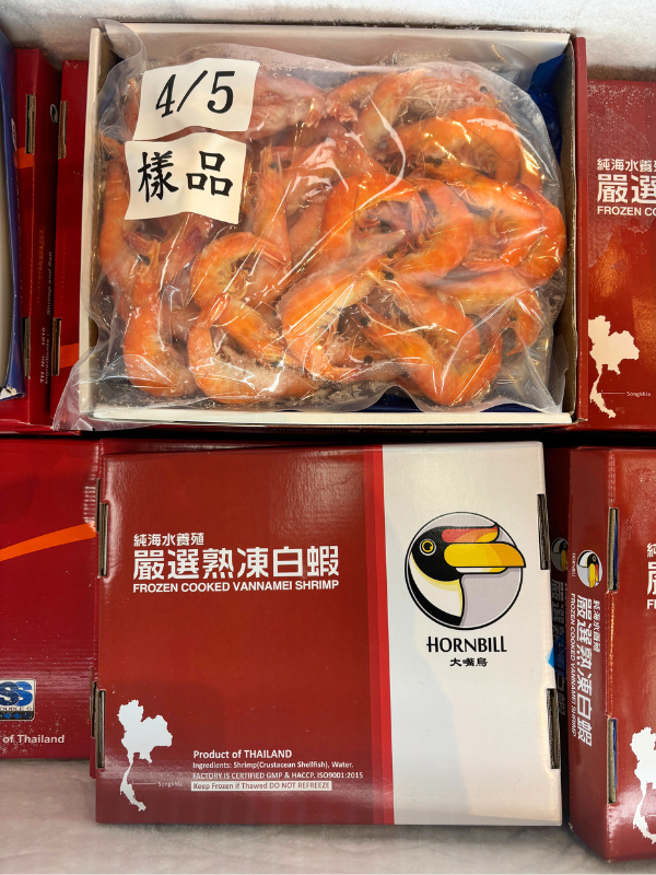 嚴選新鮮白蝦,燙熟後急速冷凍