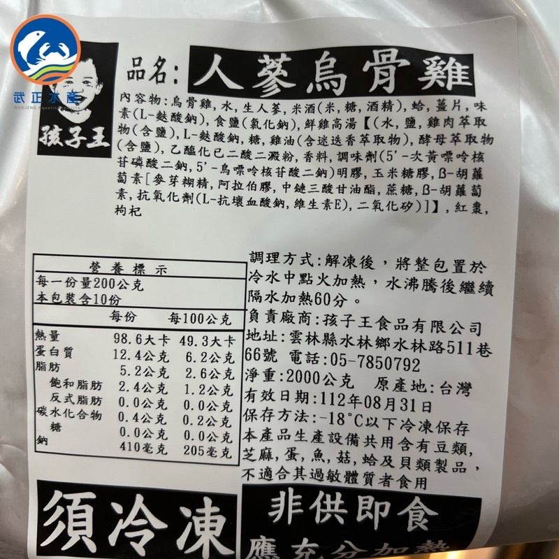 重量:2kg / 包 產地:台灣 保存方式:冷凍-18度c以下 調理方式:解凍後加熱即可上桌,不需任何調味 注意事項:本產品生產設備含有豆類、芝麻、蛋、魚、菇、蛤及貝類製品,不適合其過敏體質者食用