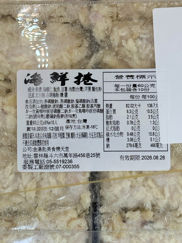 注意事項:本產品含有麩質穀類、甲殼類、魚類、頭足類及其製品,不適合其過敏體質者食用